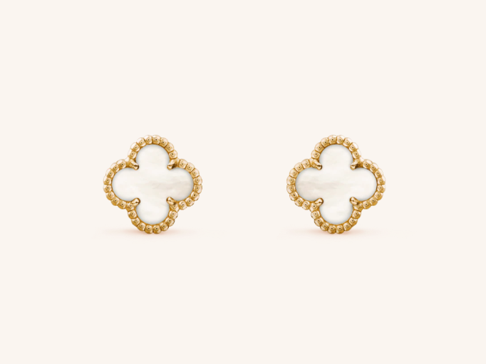 アクセサリーは、Vancleef&Arpelsのアルハンブラ×白蝶貝のミニサイズ。
