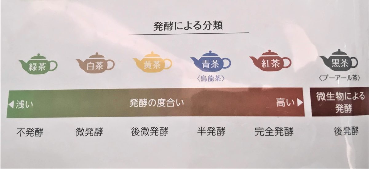 中国茶は上記のように発酵具合で6つに分類されます。